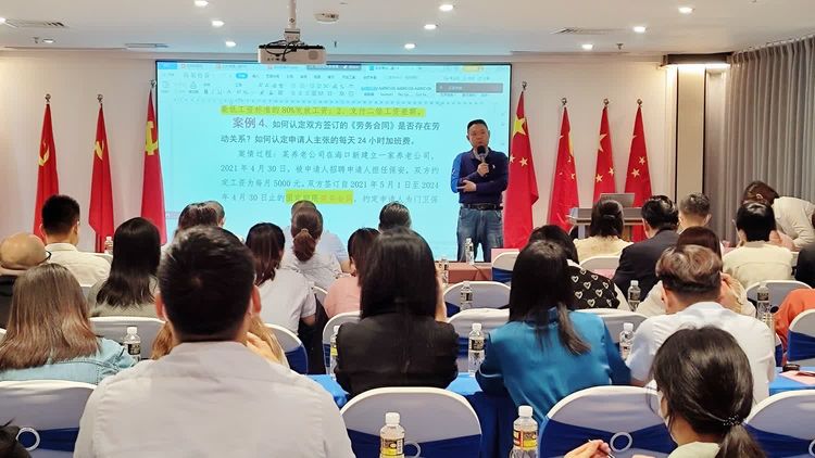 海南法立信律師事務(wù)所合伙人朱星星律師進(jìn)行勞動(dòng)法律法規(guī)宣講和企業(yè)用工法律風(fēng)險(xiǎn)防范講解。從常見(jiàn)勞動(dòng)關(guān)系風(fēng)險(xiǎn)隱患及防控、勞動(dòng)糾紛調(diào)解方法及技巧、典型案例解析等方面,為廣大用人單位和勞動(dòng)者講解勞動(dòng)保障法律法規(guī)。在源頭上幫助企業(yè)化解矛盾、構(gòu)建和諧勞動(dòng)關(guān)系。