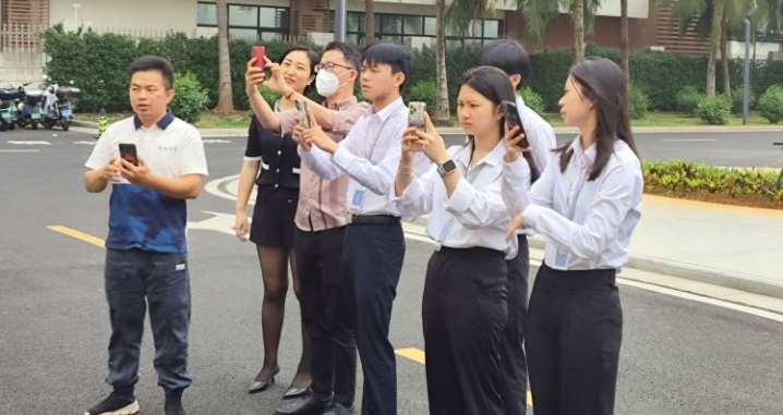 為了更好的將所學(xué)技巧內(nèi)容運用起來,羅老師還帶領(lǐng)大家進(jìn)行了實戰(zhàn)演練,大家一起來到園區(qū)門口,以園區(qū)宣傳片入場片段為主題進(jìn)行了拍攝,大家互相交流討論,拍攝靈感隨即迸發(fā)。